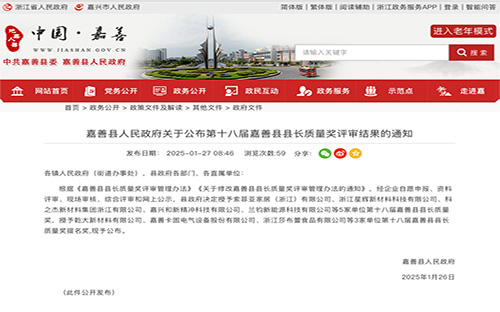 浙江星辉新材料科技有限公司获第十八届嘉善县县长质量奖